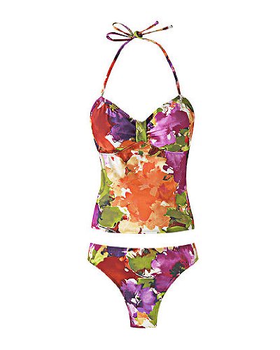 - Chic, retro-inspired one-piece swimsuit with shirred, knotted bust; ties behind neck
