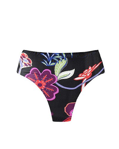 - Editor's notes:Bold and beautiful botanical-print high-waist bikini swimsuit bottom in rich jewel tones on black
