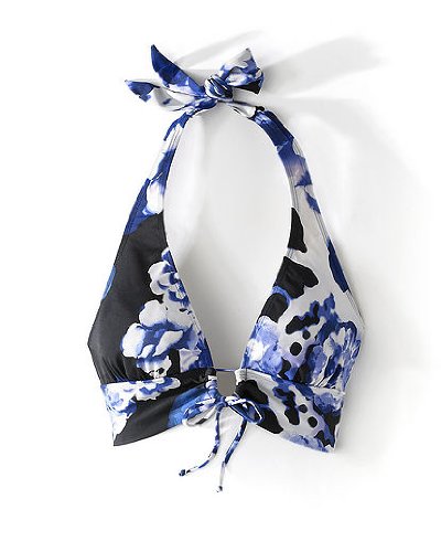 - Editor's notes:Beautiful floral halter bikini swimsuit top with tie front, in a gorgeous mix of blues and white